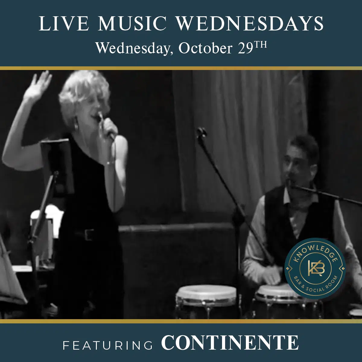 This Wednesday, Continente brings their vibrant blend of Latin, jazz, and world-inspired music to Knowledge Bar & Social Room.