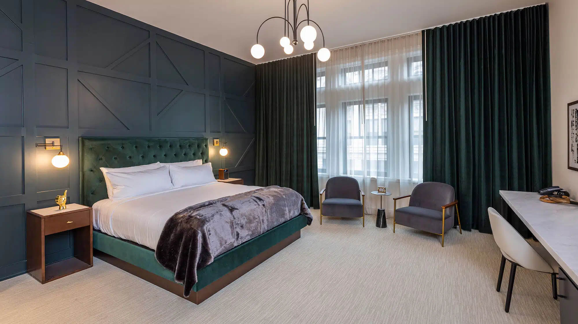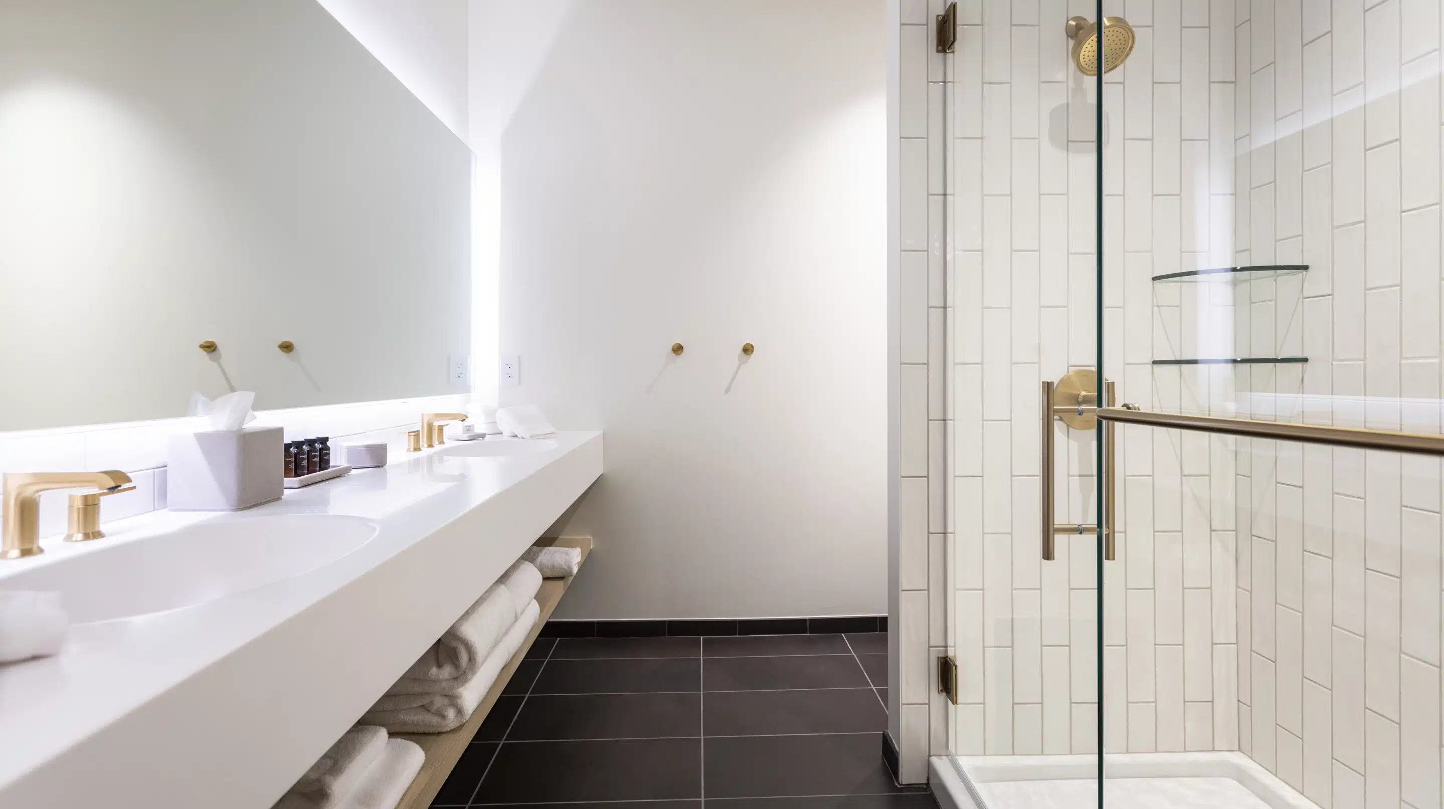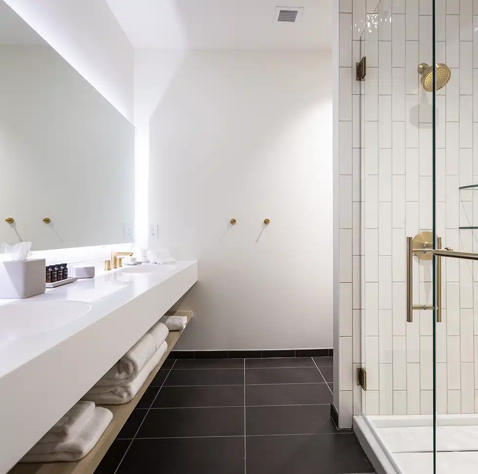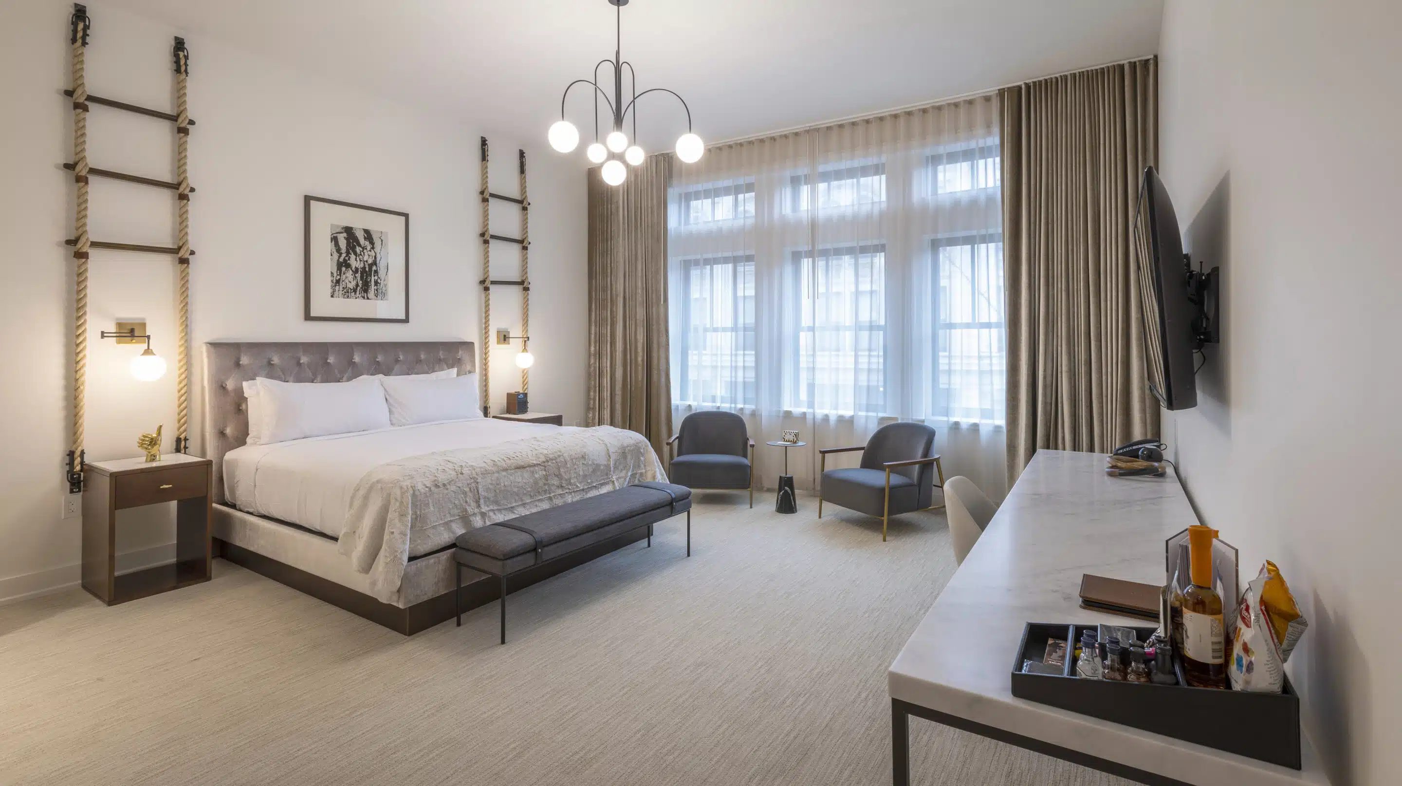 Located on the private, top floor penthouse level this 2 Bedroom/2 Bath suite features an expansive outdoor terrace with sweeping views of downtown Covington and the hotel’s courtyard!