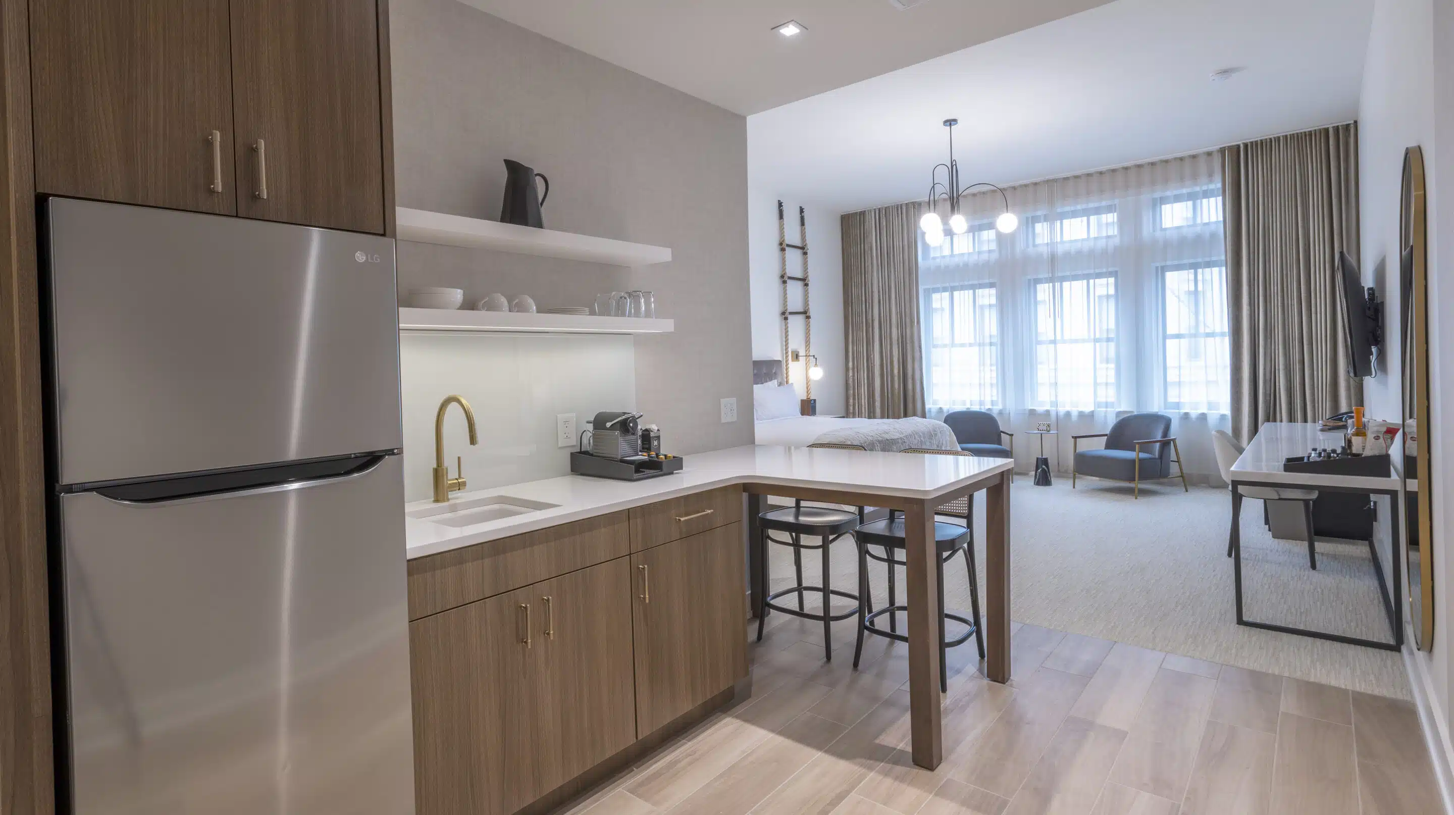 North Signature King Guestroom with kitchenette, a large bathroom and plenty of amenities.