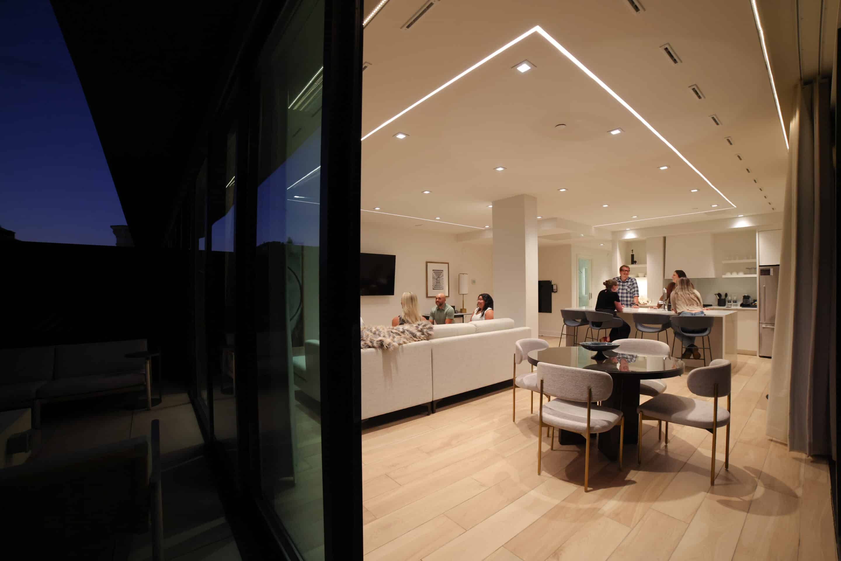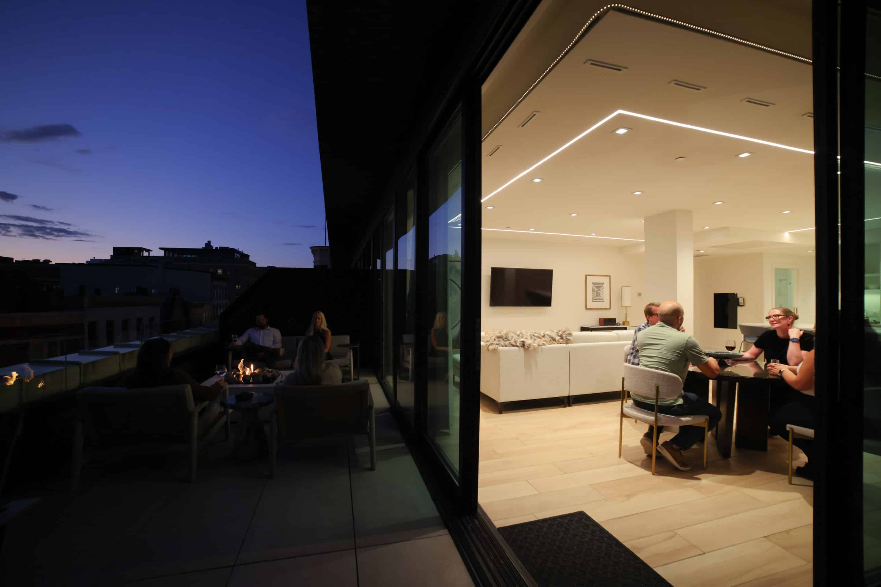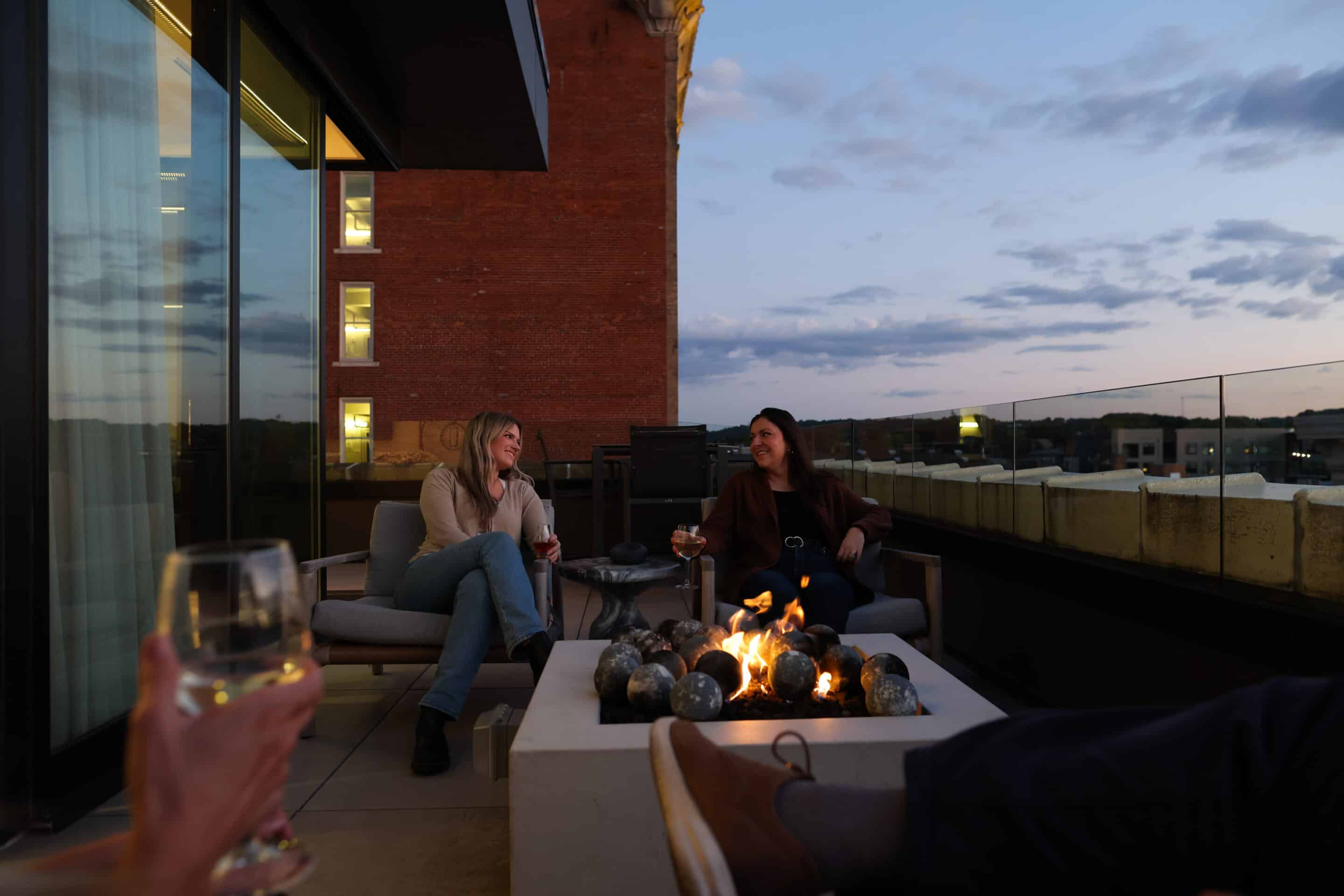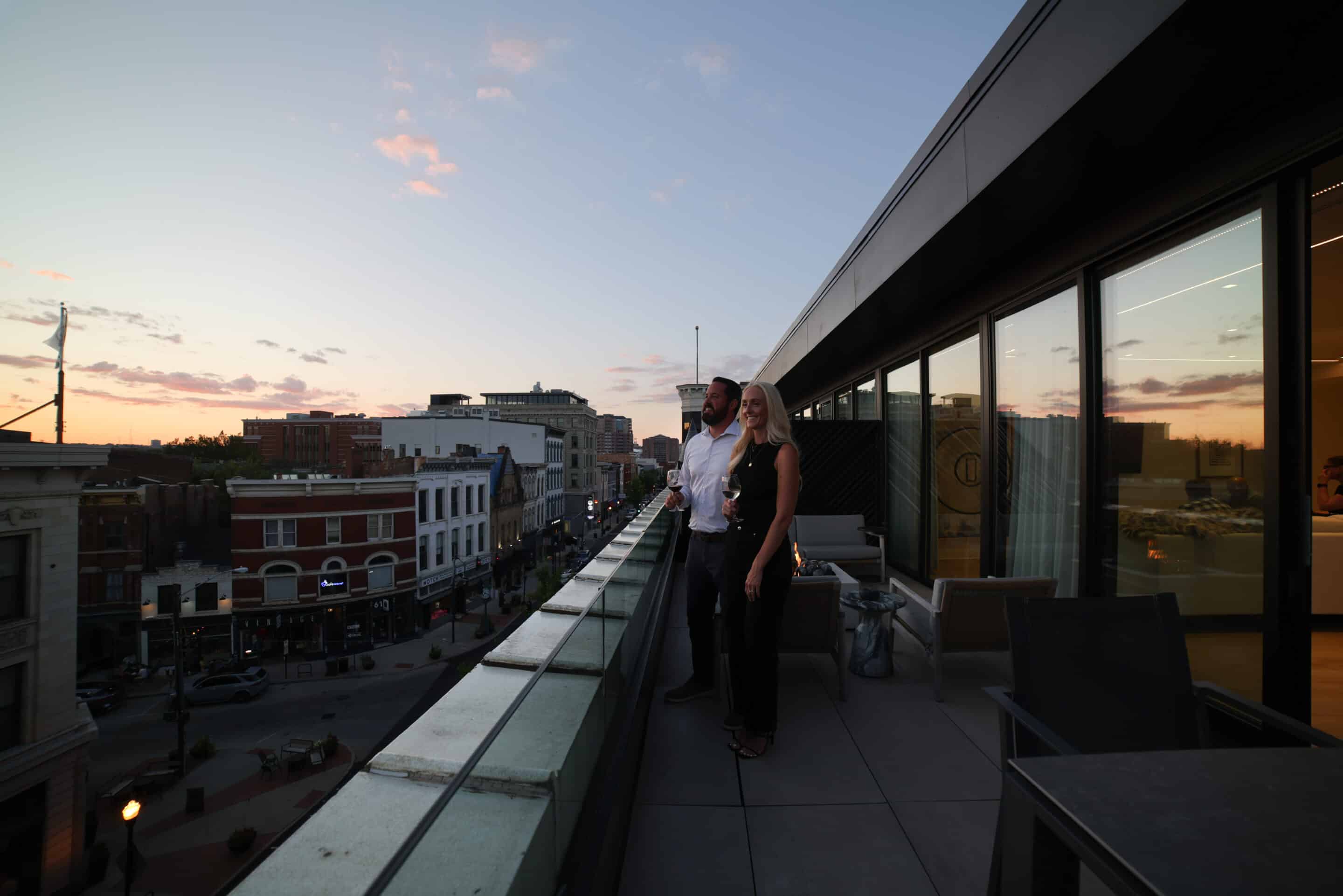 Our most luxurious suite features an expansive outdoor terrace with sweeping views of downtown Covington and Cincinnati.